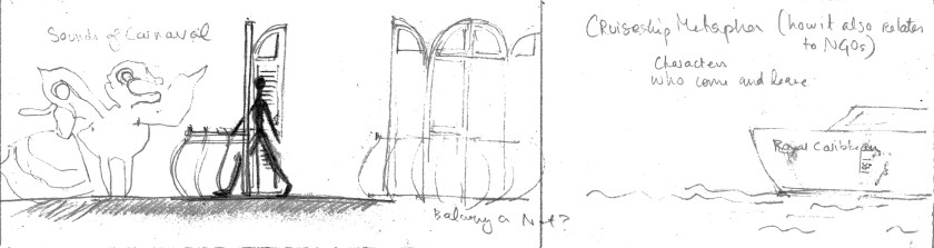 While strengthening my concept with an architectural intervention, I am gathering architectural elements found in Jacmel, Haiti, and the Caribbean, for inspiration. Below are some of my drawings either depicting those elements as they are, or transforming them for personal use.