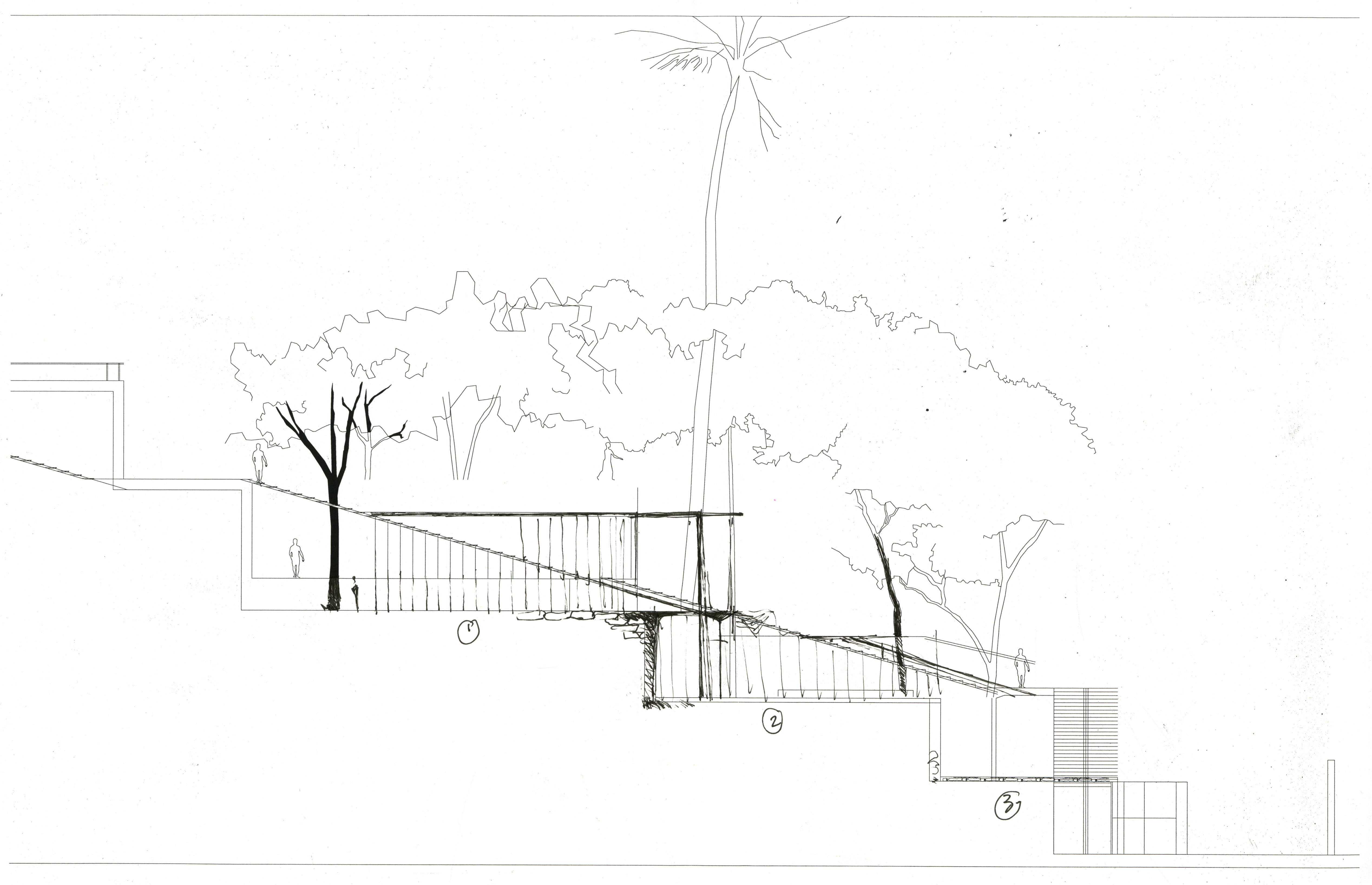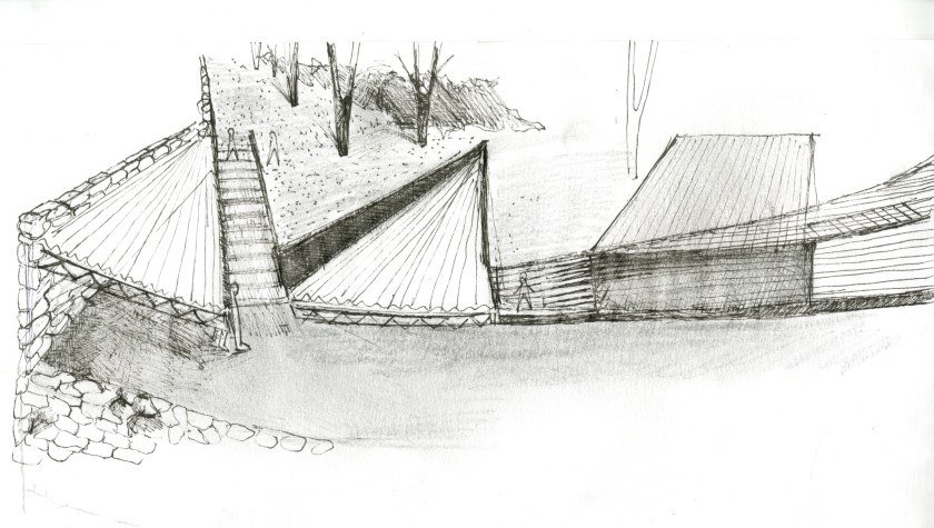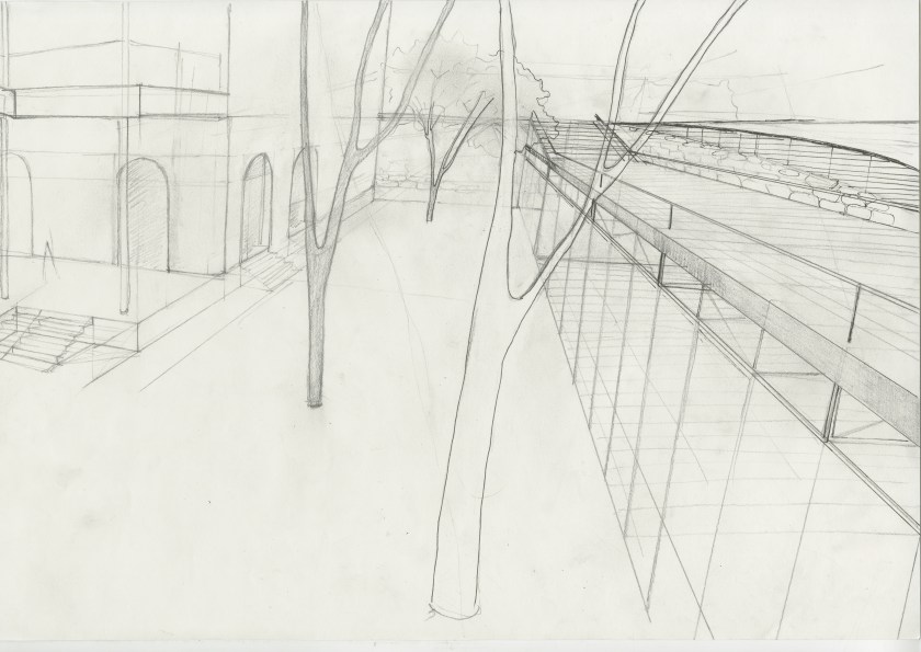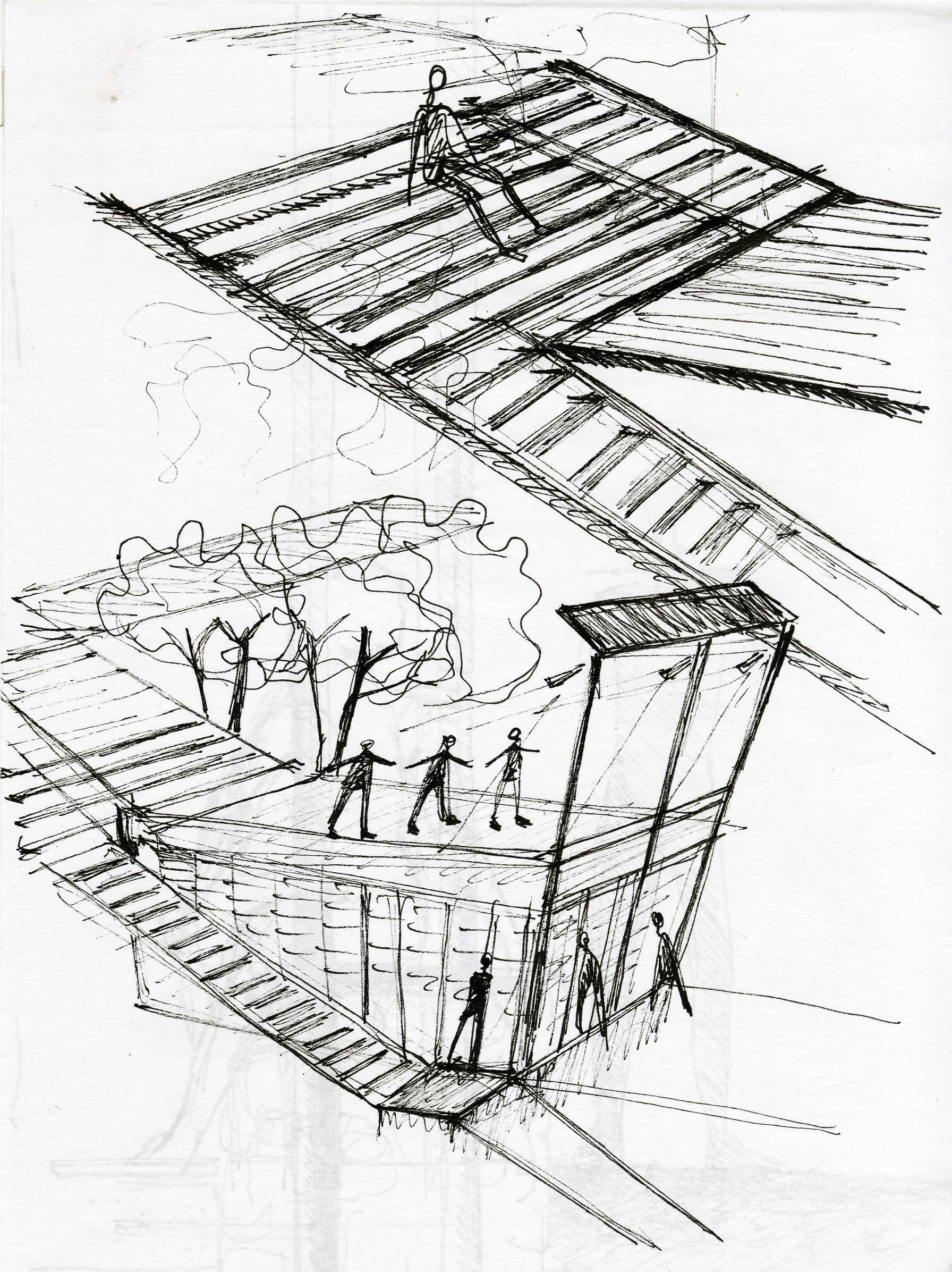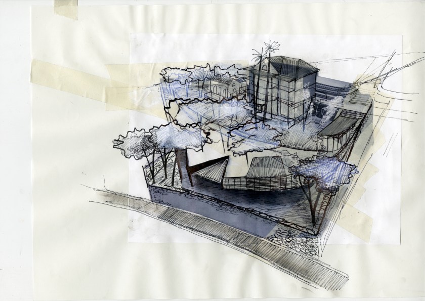 Dance Space, from early explorations to later design schemes incorporating the steel into the ground and structure even more