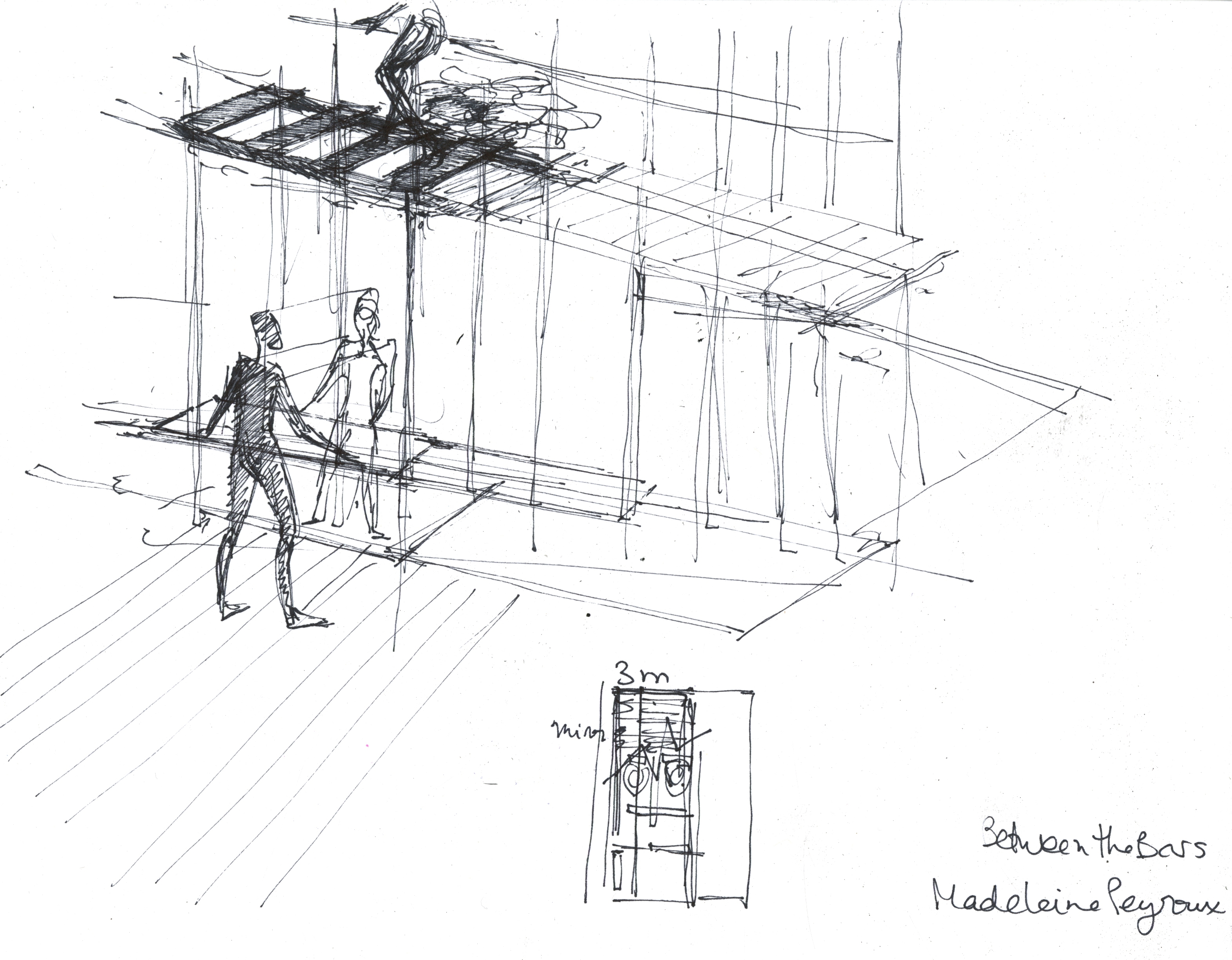 On Rue d’Orléans- Performance platform and underneath, a changing room/ green room for performers, in regular days, serves as changing/ refresher rooms for dancers before they proceed down into their dance classes
